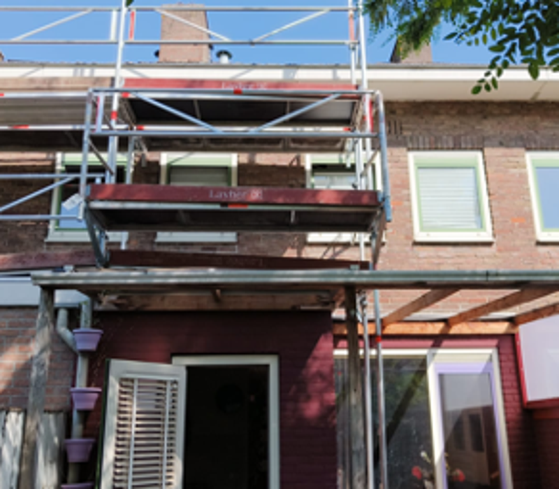 Gelukkig kwamen er al snel twee mannen van het aannemersbedrijf (het bedrijf dat enorm goed, vriendelijk en betrouwbaar is in wat het doet) kijken en de schade opnemen. Zij bevestigden dat dit nooit zo opgeleverd had mogen worden, dat het nergens op sloeg en dat zij dit vandaag nog in orde zouden maken. Super fijn! Dezelfde mannen die zo enorm zorgvuldig het dak van mijn veranda hadden gedemonteerd. Ineens paste de vlizotrap die er dus al de hele tijd inzat niet meer en moest deze ook nog ingekort worden…?! Wij snapten er allemaal, inclusief de werkmannen, helemaal niets van.