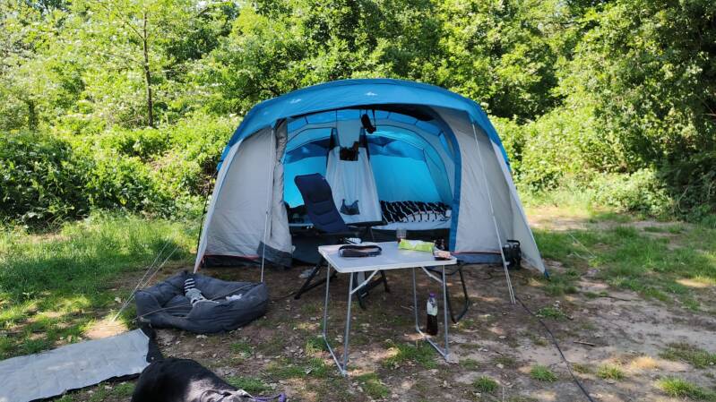 Van 12 t/m 18 juni op vakantie met Milo, pap en mam in Limburg, op de Duitse grens. Midden in de natuur, heerlijk rustig en stil. Prachtig weer. Camping af en we zaten in het bos, met meerdere paden naar meerdere routes. Prachtig bos en woud, heerlijke wandelingen gemaakt. Heel erg fijn en gezellig gehad met pap en mam. Goeie gesprekken gevoerd, leuke spelletjes gedaan, lekker gelezen, nergens over na hoeven denken. Leuk tentje ontdekt waar we lekker gezeten en iets gedronken hebben, een paar keer. Papa een heling gegeven voor zijn zenuwpijn. Milo is zo’n zen boeddha, dat is elke keer opnieuw een genot om daar weer een nieuwe dimensie in te mogen ervaren. Alle honden op de camping moesten aan een lange lijn blijven, omdat ze anders wegliepen of bij anderen op de plek kwamen en het waren allemaal honden die heel makkelijk aansloegen. Milo heeft de hele tijd, zonder uitzondering, los kunnen zijn, zonder tuigje, zonder lijn. Hij vond het superfijn om tussen onze tent en de caravan van opa en oma op en neer te banjeren, met zijn balletje, lekker er tussenin liggen en knuffels en lekkers halen bij mij en opa en oma. ’s Ochtends waren we samen bezig met opstaan en zodra ik hoorde dat de caravan openging, liet ik Milo de tent uit. Hij rende dan meteen naar de caravan om (meestal) oma te begroeten met een staart die bijna als een propeller ronddraaide van de lol. Zo cute! Echt enorm genoten!